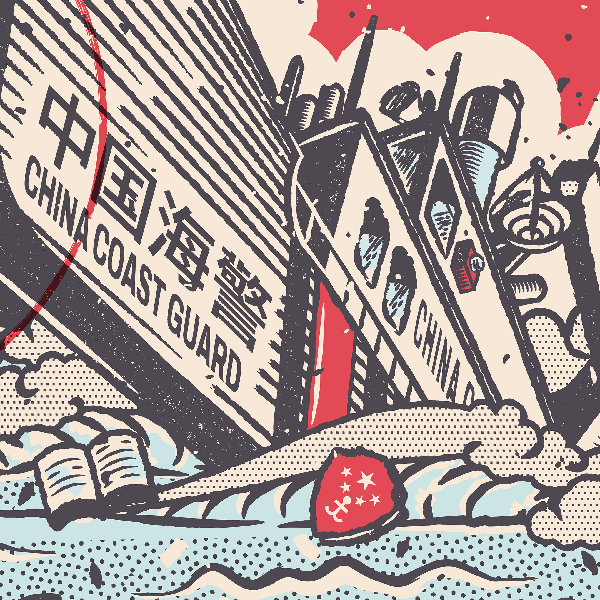 Created in 2024, this personal illustration was made in response to the ongoing tensions in the West Philippine Sea. The piece serves as a statement on the situation and a visual reflection of the current regional atmosphere.